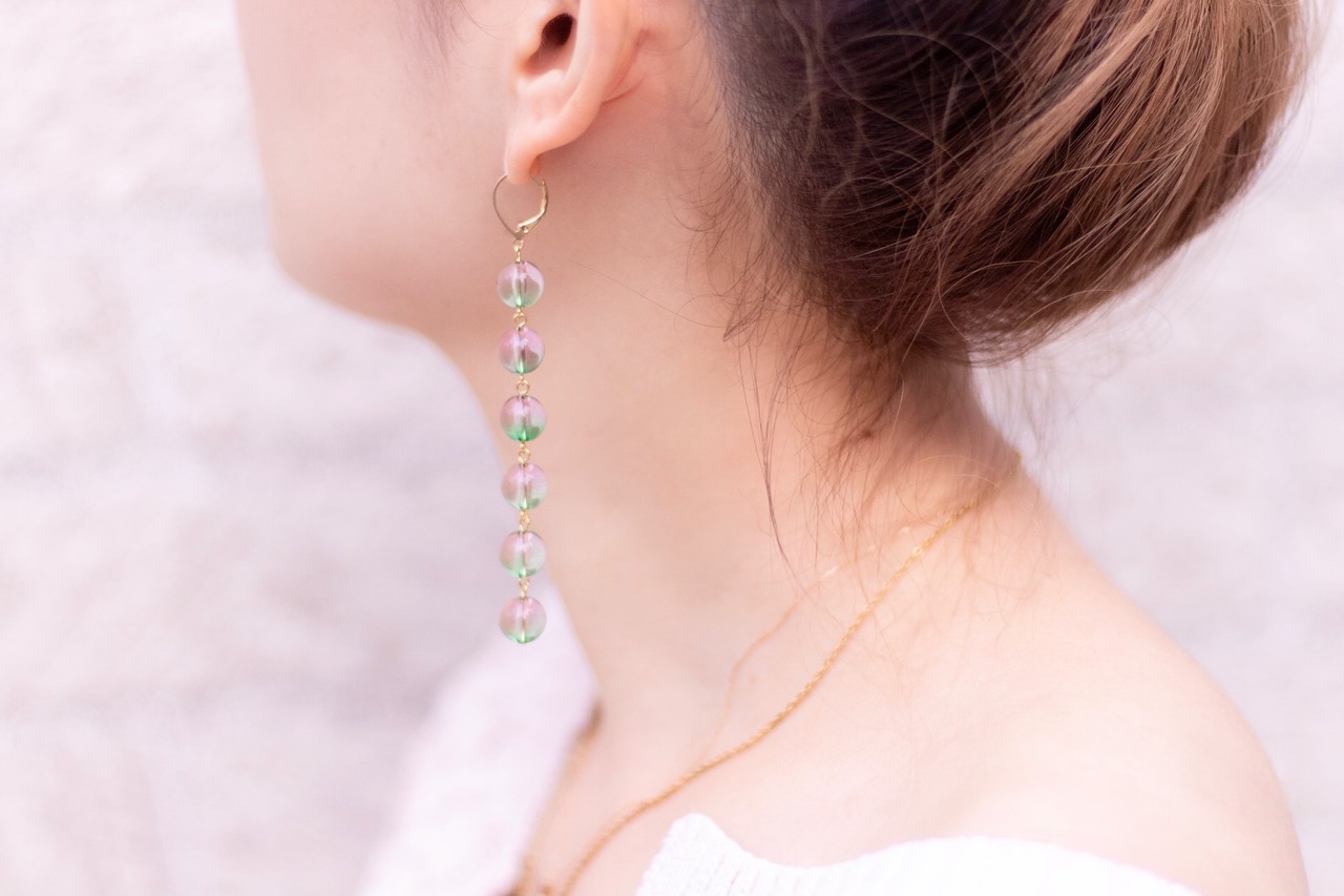 樹脂ヴィトライユピンク×グリーン ピアスorイヤリング | liberna